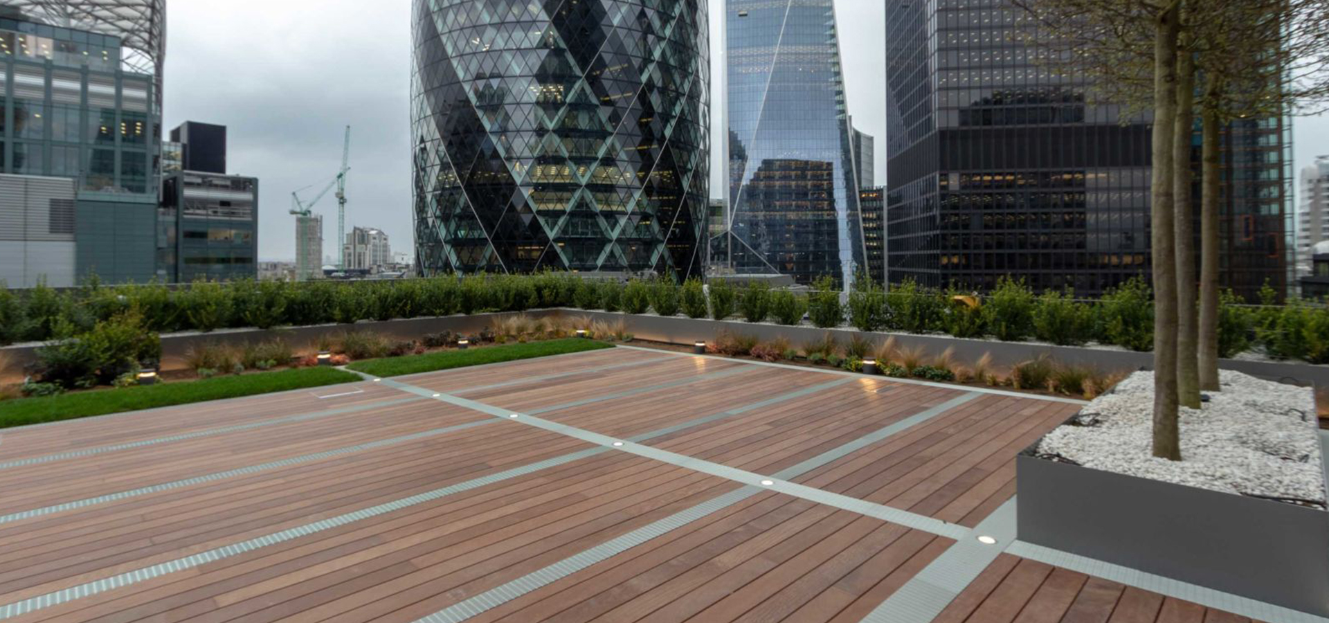 100 Bishopsgate is part of a mixed-use commercial development by Brookfiled Multiplex and Architects Allies & Morrison. The forty-storey tower is anchored by five contiigious podium floors and will provide an area of 944,800 sqft. Buzon UK were specified to supply and install adjustable pedestals to support The Outdoor Deck Company high grade IPE timber decking on the roof terrace at 100 Bishopsgate to create a stunning relaxing space.